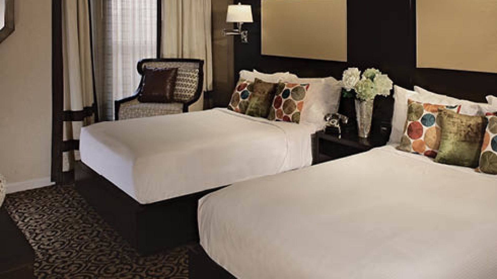 Spend a luxurious night in our One Bedroom Double Suites. Ideal for groups and families, this suite features a bedroom, separated by French doors, with two plush full-size beds as well as a queen sleeper sofa in the living room.